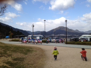 さらに幼稚園児の列を発見して駆け寄ります!